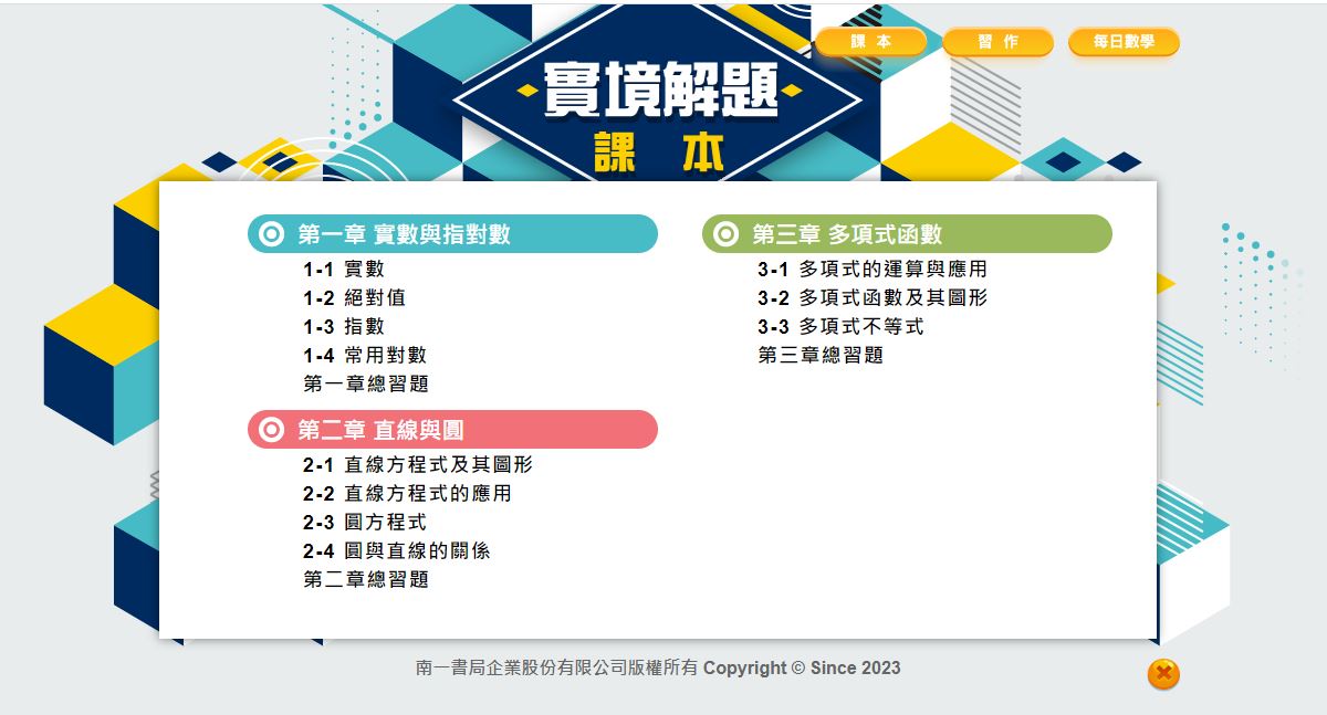112學年上學期 高中 實境解題 南一版 數學科 1年級 教學光碟