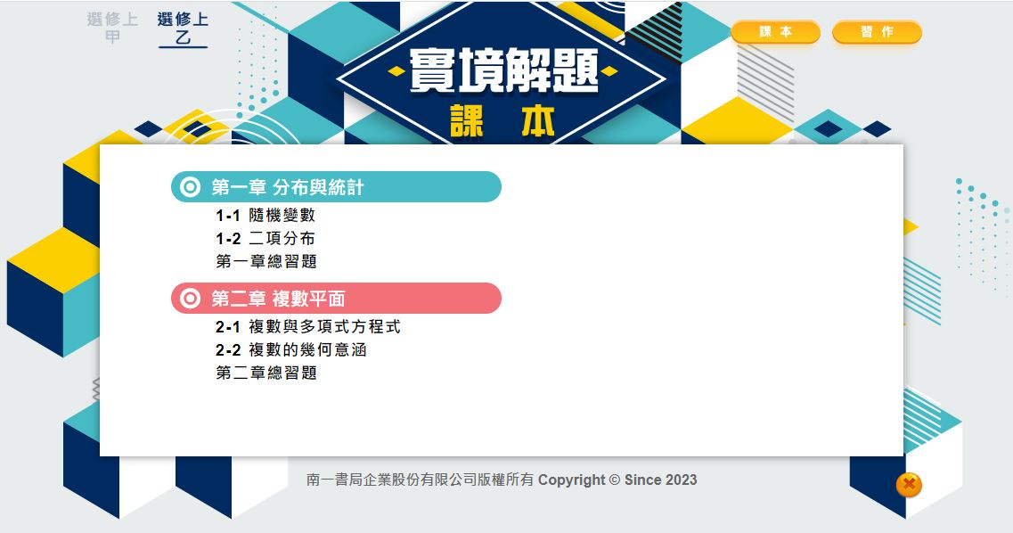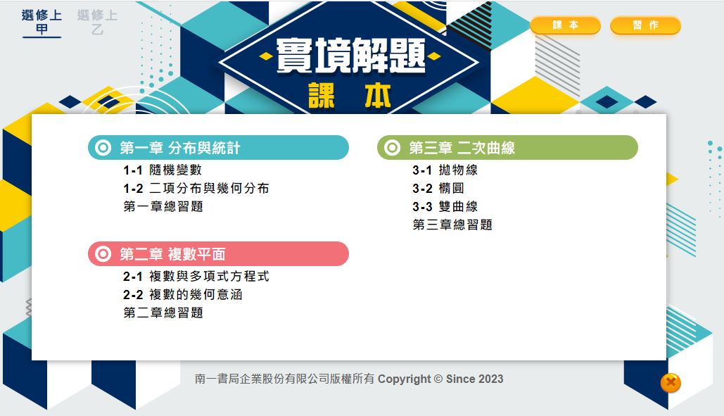 112學年上學期 高中 實境解題 南一版 數學科 3年級 教學光碟