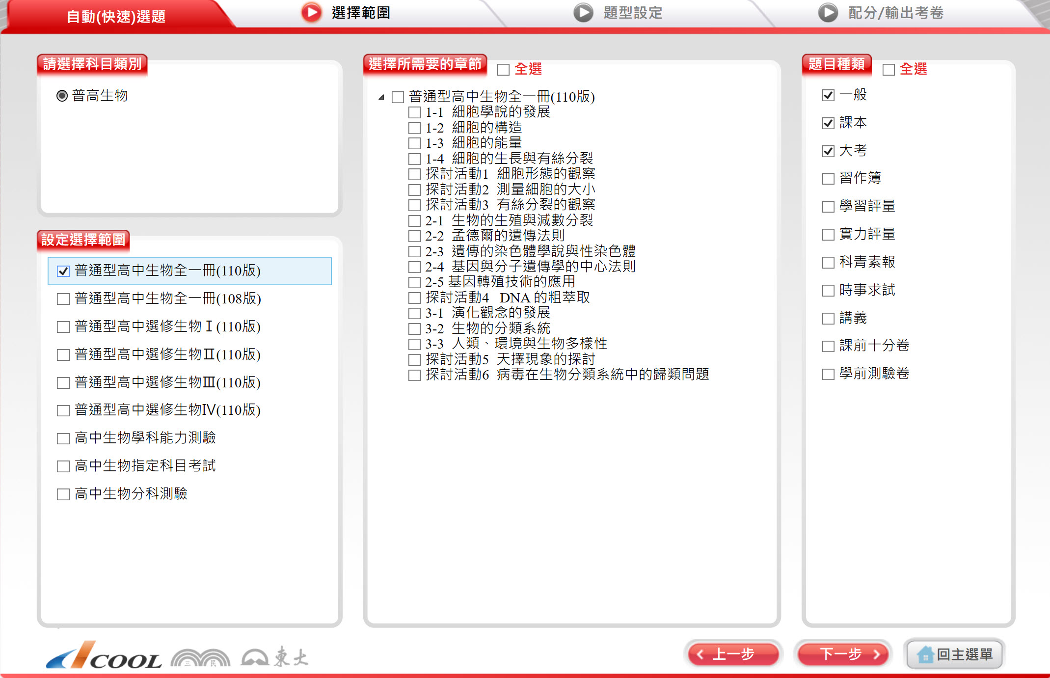 112學年上學期 高中命題光碟 三民版 生物科(全、選修I、選修II、選修III、選修IV)(108課綱) 題庫光碟