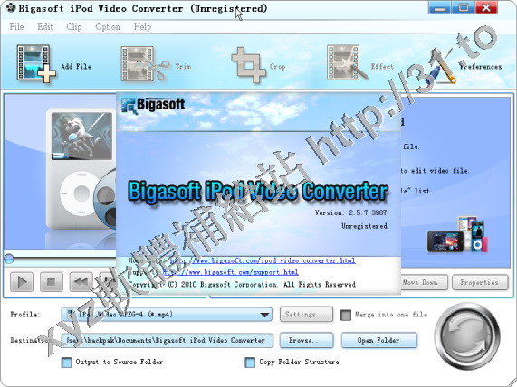 • Bigasoft iPod Video Converter v3.7.34.4820 英文正式版(媒體轉換軟體)